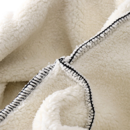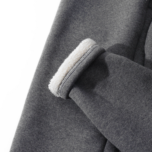 Meistens aus einer Kombination aus Polyester, Elasthan, Baumwolle oder Mikrofleece. Das Futter ist oft aus weichem, wärmendem Fleece oder angerautem Stoff.